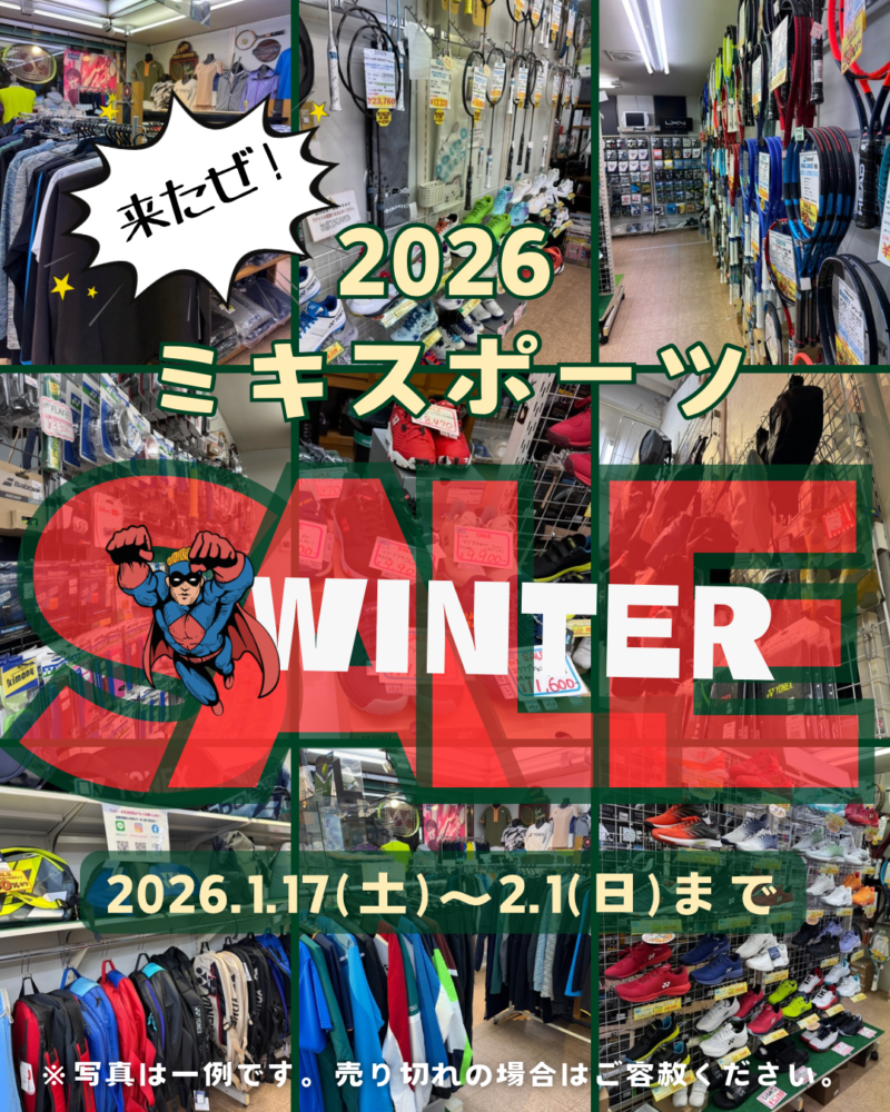 2026.01.161月17日よりミキスポーツクリアランスセール開催🎉半期に一度のミキスポ クリアランスセール開催! 1月17日(土)よりスタート! 日頃のご愛顧に感謝して、店内商品がお得になる… more info