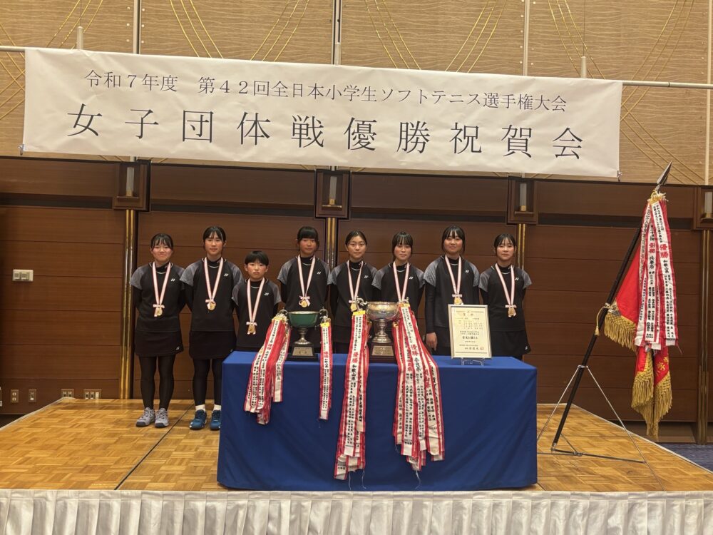 2/11 アバローム紀の国にて、第42回全日本小学生ソフトテニス選手権大会 女子団体戦優勝の祝賀会が催されました。 選手、監督、コーチ、保護者の想いが一つになり、和歌山県に優勝旗がもたらされた事は素晴らしいと思います😊 おめでとうございます! これからも応援しております✨